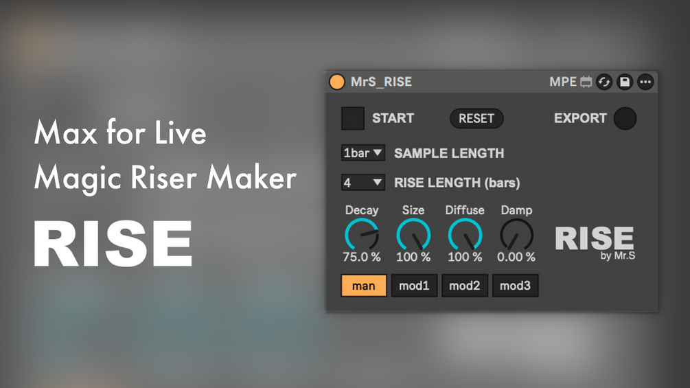 Drop it on any audio or midi track, hit start, and RISE will create a riser effect up to 16 bars long.